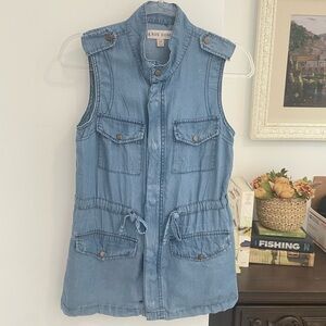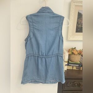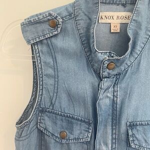Knox Rose Chambray Zip Up vest XS denim pockets cinched waist excellent