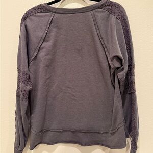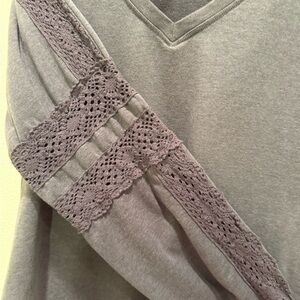 Chic V-neck sweatshirt with lace detailing. Soft fabric for everyday comfort.