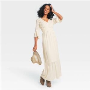 With a classic cream color and elegant design, this maxi dress is ideal for various occasions and can be easily dressed up or down.