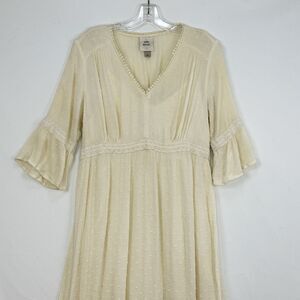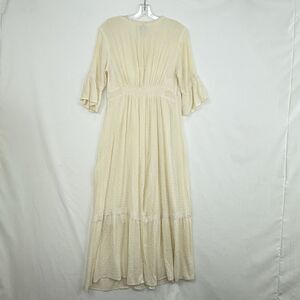 Knox Rose Clip Swiss Dot Ruffle Flared Sleeve Tiered Maxi Dress Ivory Size L