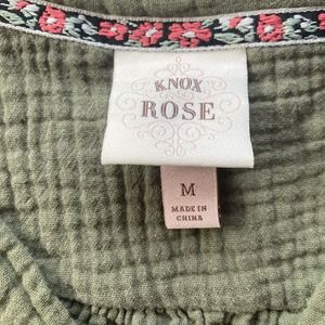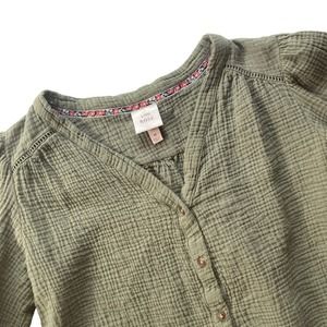 Knox Rose Cotton Gauze Button Front Puff Sleeve Top Size M Olive Green