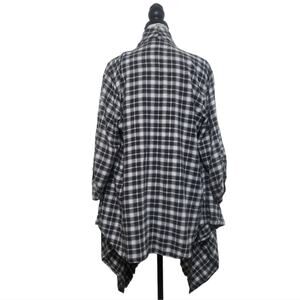 Knox Rose Dark Brown White Plaid Open Waterfall Shawl Cardigan Size Large