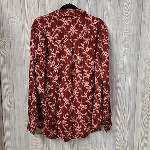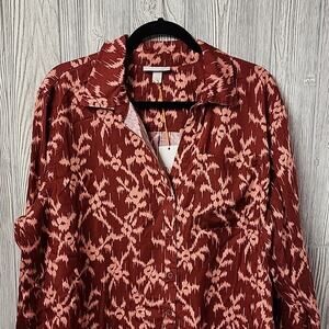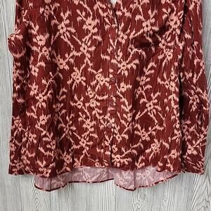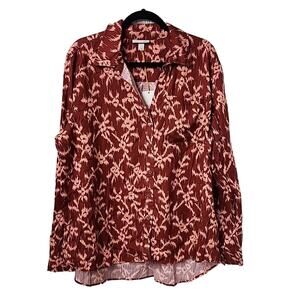 Knox Rose Deep Hibiscus Button Down Long Sleeve Top, Women's Plus XXL, NWT
