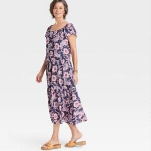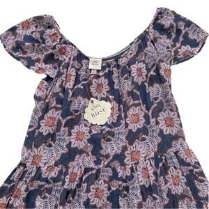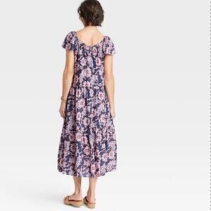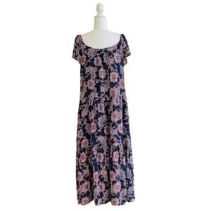 Knox Rose Dress Blue Purple Floral Flutter Sleeve Tiered A-Line Maxi Medium NEW