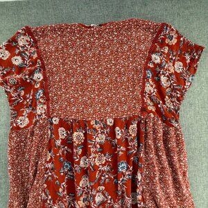 Knox Rose Dress Burnt Orange Boho Relaxed Fit Medium Buttons Floral Rayon