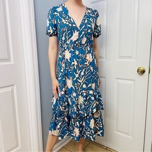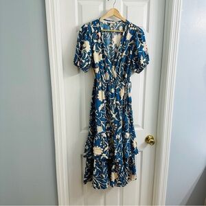 Knox Rose Dress Midi Blue Boho Beach Summer Wrap Floral Tropical Size Small
