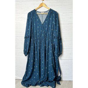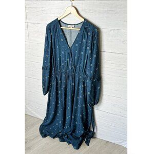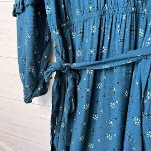 Knox Rose Dress Womens Size Large Teal Peasant Ruffle Long Sleeve Faux Wrap Maxi