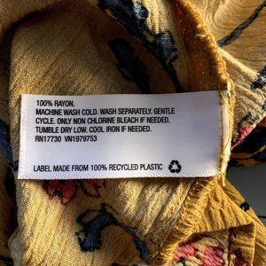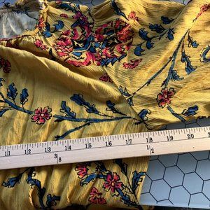 Knox Rose Dress Womens Small Golden Yellow Floral Folkloric A Line 3/4 Sleeves