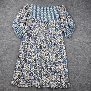 Knox Rose Dress Womens XL Blue Floral Boho Peasant Tassel Puff Sleeve Cottage