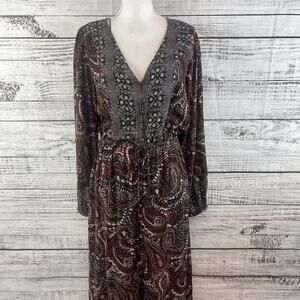Knox Rose Dress sz Medium Navy Blue Gold Red Paisley Boho Modest Peasant Prairie