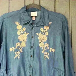 Knox Rose Demi Embroidered Button Down Shirt Size. Small. Measure flat 19” across. Length from very top collar to bottom 28.5”. New no tag