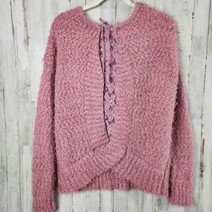 Knox Rose Eyelash Lace Back Sweater Dusty Rose Size XXL