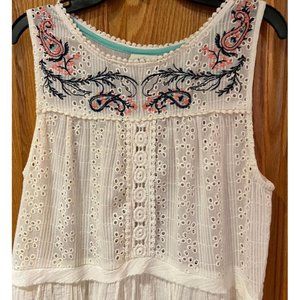 Knox Rose Eyelet Embroidered Sleeveless Babydoll White Boho Blouse Size Medium