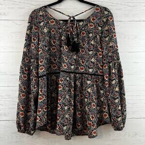 Knox Rose Floral Long Sleeve Peasant Blouse Size S