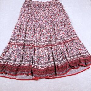 Knox Rose Floral Maxi Skirt Large Hi-Low Tiered Ruffle Western Peasant Boho