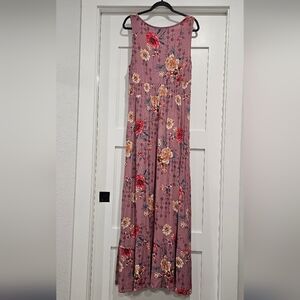 Elegant floral maxi dress by Knox Rose. Features a sleeveless design with a flowy silhouette. Perfect for casual outings or special occasions.