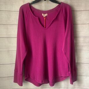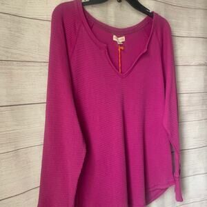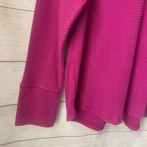 Fuchsia pink long sleeve shirt by Knox Rose. This shirt has a V-neckline and a waffle-like textured pattern. The back of the shirt is slightly longer than the front. It is NEW, with tags. Size XXL.