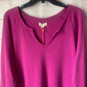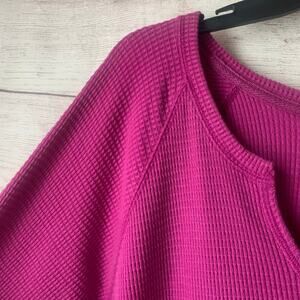 Knox Rose Fuchsia Long Sleeve Shirt V Neckline Waffle Texture XXL