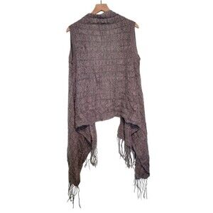 Knox Rose Gray Cable Knit Fringe Trim Sweater Vest Cardigan Size S/M