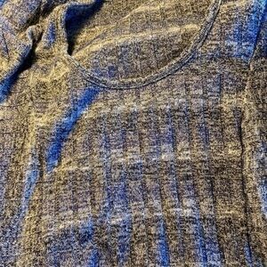 scoop neck sweater, thin knit sweater, rayon sweater, tunic length sweater, long sweater, gray and blue sweater, sparkly sweater
