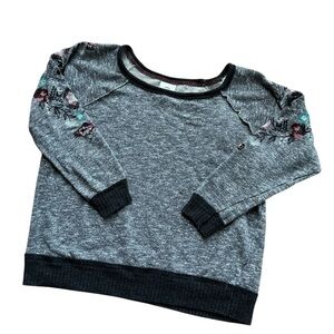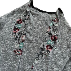 Knox Rose Heather Gray Floral Embroidered Pullover Sweatshirt Sweater L