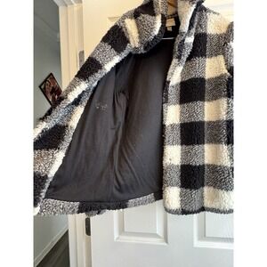 Knox Rose Jacket Womens Medium Black White Buffalo Plaid Sherpa Collared Pocket