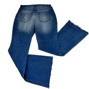 Knox Rose Jeans Womens XL Pull on Flare Raw Hem Medium Wash Hippie Gypsy Boho