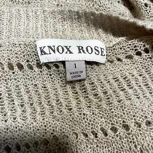 This drape front, boho style Knox Rose cardigan is open front and sleeveless. Very good used condition. A few small snags but not very noticeable because of the open-knit style.