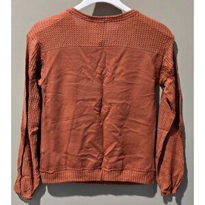 Knox Rose Lace Cutout Thermal & Waffle Knit Cave Brown LS Top