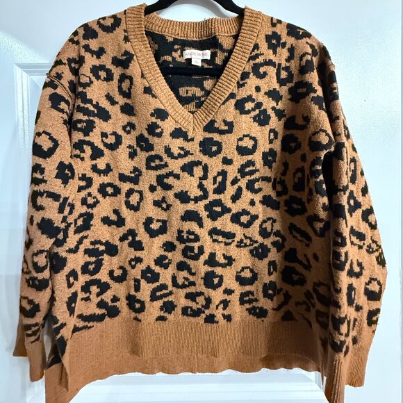 Knox Rose Leopard Print V-Neck Sweater Size M