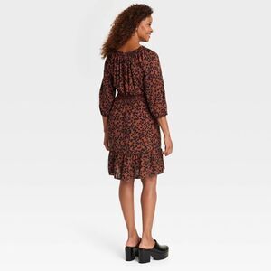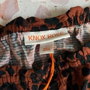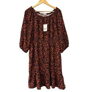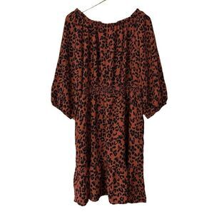 Knox Rose Long Sleeve Smocked A-Line Dress dark brown leopard print large new
