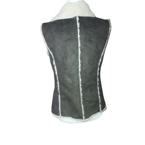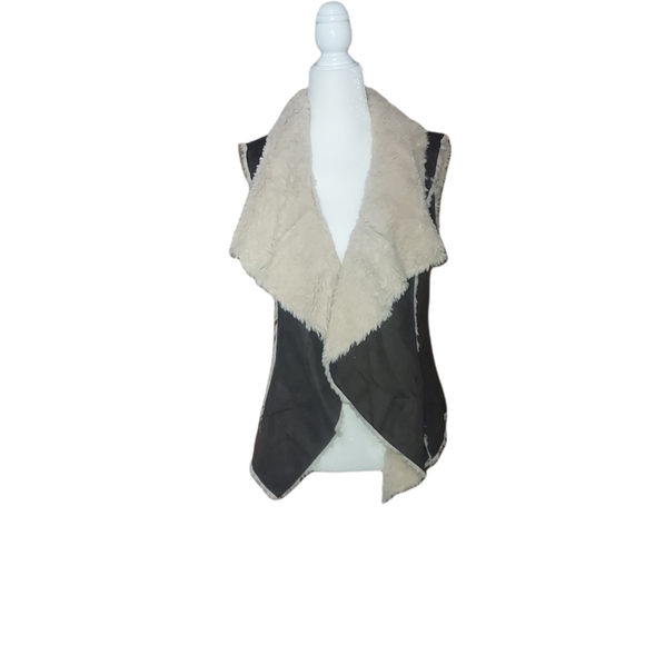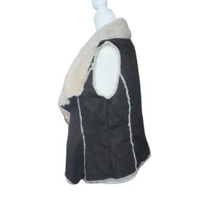 Knox Rose M Open Front Faux Fur Vest Over Coat Sleeveless Patchwork Brow…