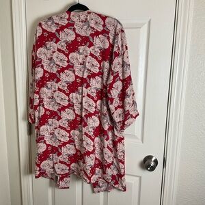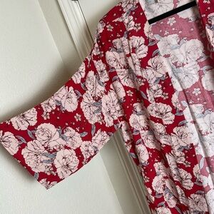 Knox Rose Red Floral Boho Kimono Stylish floral kimono cardigan featuring a vibrant red and floral pattern. Perfect for layering.