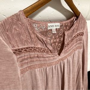 Knox Rose Mauve Pink Long Sleeve Lace Top Size Small S