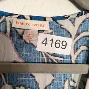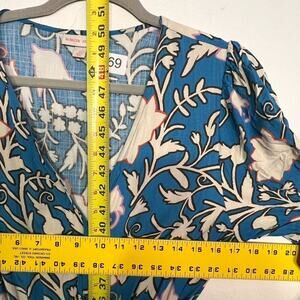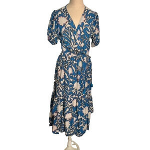 Knox Rose Dress Womens Medium Blue Short Sleeve True Wrap Floral Tiered Tassel