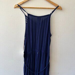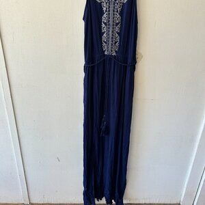 Knox Rose Maxi Dress Womens Medium Navy NWT Boho Embroidered Side Slits Strappy
