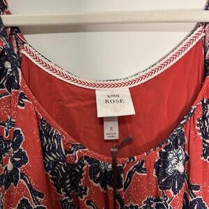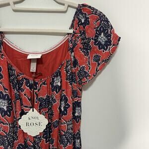 Elevate your wardrobe with this beautiful Knox Rose maxi dress in a vibrant red floral pattern. The flutter short sleeves and A-line style make it a flattering fit for any occasion. The dress is made of soft and comfortable rayon material, with a lined interior and convenient pockets.