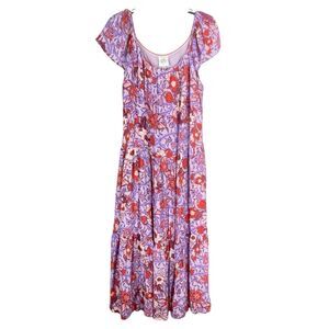 Knox Rose Midi Dress XL Womens Floral Flutter Tiered A-Line Purple Pockets Boho