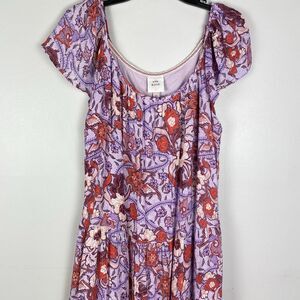 Knox Rose Midi Dress Floral Flutter Tiered A-Line Purple Pockets Boho XL