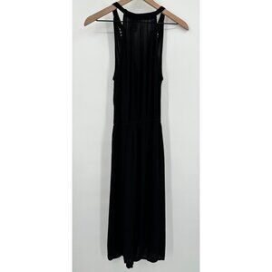 Knox Rose Midi Dress Women Medium Black Sleeveless Surplice Tassel Elastic Waist
