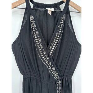 Knox Rose Midi Dress Women Medium Black Sleeveless Surplice Elastic Waist Tassel