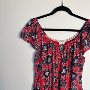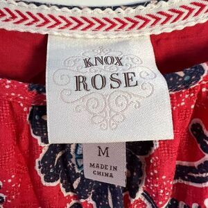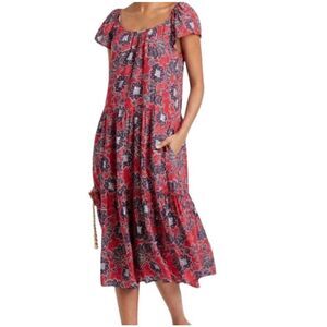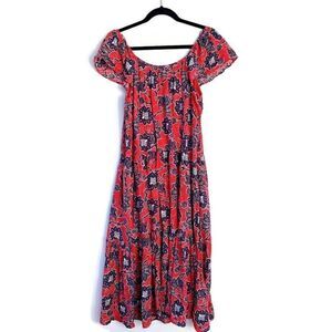 Knox Rose Midi Dress Cap Sleeve Red Blue Boho Floral Scoop Neck Summer M
