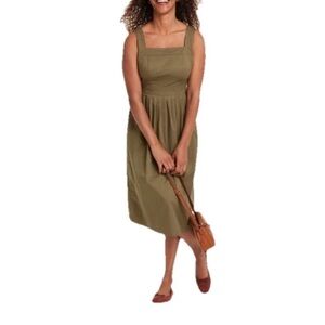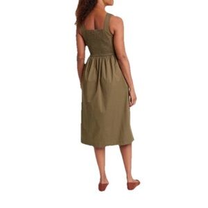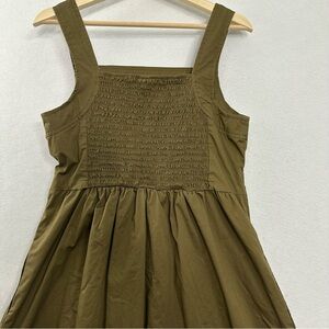 Knox Rose Milkmaid Midi Dress Womens Medium Olive Green Pockets Smocked Fall