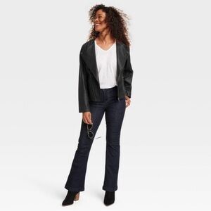 Sleek and stylish, this Knox Rose™ moto jacket in classic black features a soft faux leather exterior with a smooth recycled polyester lining. Designed with an asymmetrical zip front, silver-tone hardware, and zippered pockets, it’s the perfect mix of edgy and versatile. The lightweight faux leather makes it a great transitional piece for fall or spring layering.