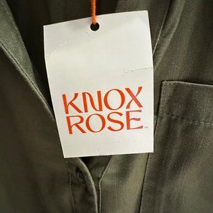 Knox Rose NWT women's size XL army green long sleeve button front v neck top