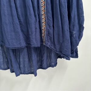 Knox Rose Navy Blue Peasant Top With Embroidery Trim