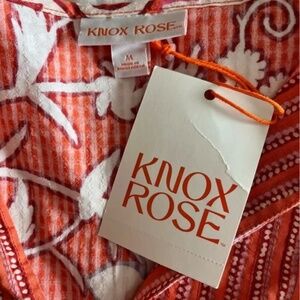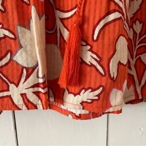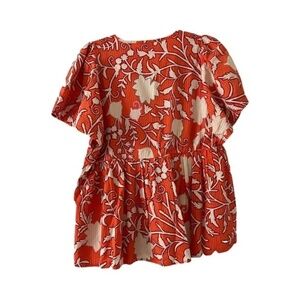 Knox Rose | New Orange Floral Boho Flutter Sleeve V-Neck Peasant Top, Medium