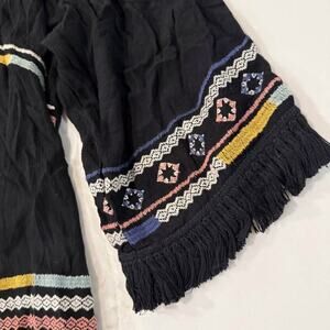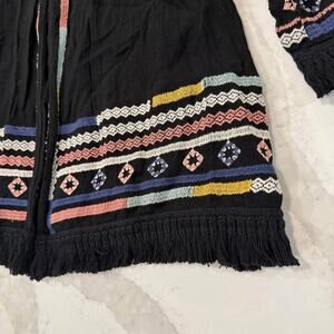 Knox Rose Open Front Embroidered Boho Kimono Womens Medium Black Tassle Cardigan
