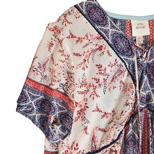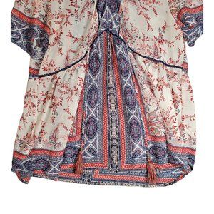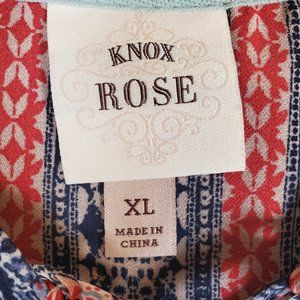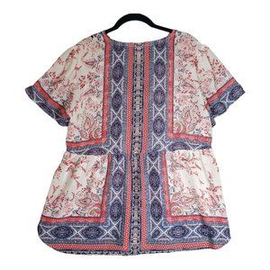 Knox Rose Paisley Print Chiffon Boho Lace Up Tassel Top Sz XL Red White Blue