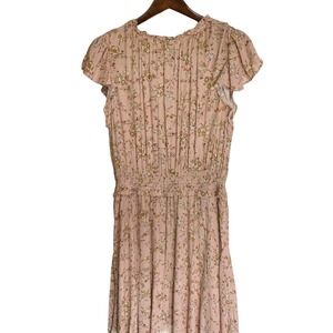 Knox Rose Pale Blush Floral Flutter Short Sleeve Smocked Waist Dress Boho xxl